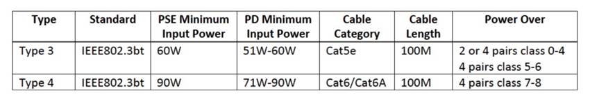 802.3 af/at/bt PoE++標準