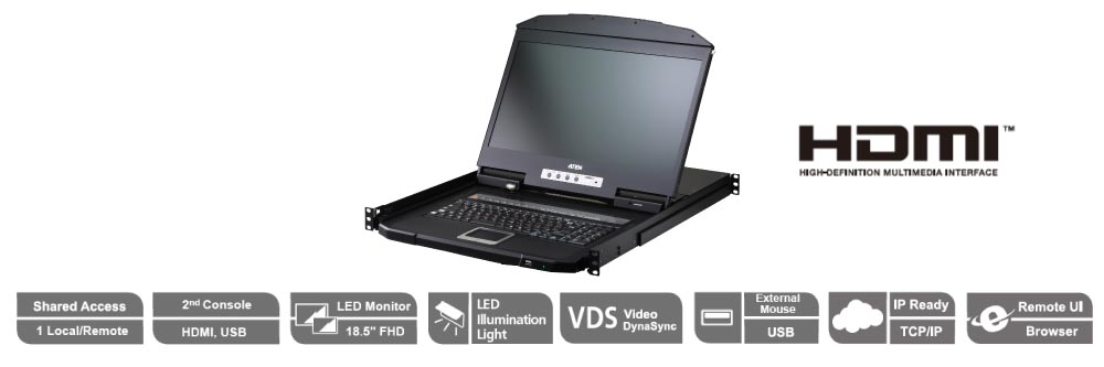 ATEN 最新18.5” Short Depth USB HDMI Single Rail WideScreen LCD KVM over IP Switch系列