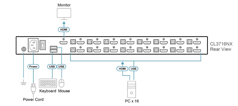 16-Port 18.5" Short Depth USB HDMI