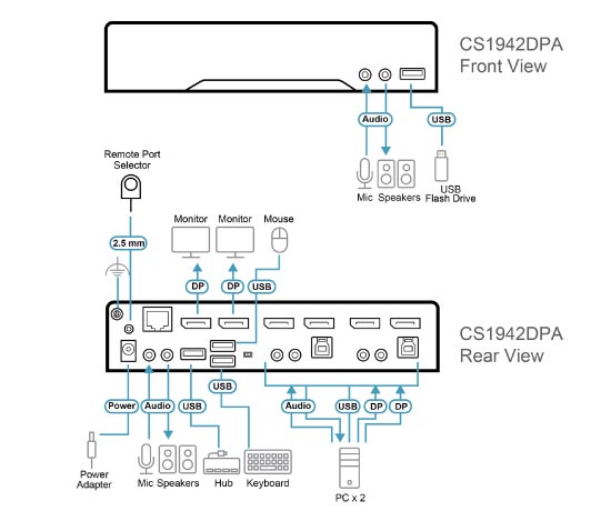 通過CS1942DPADisplayPort輸出可提供HD Audio,機身亦備有3.5mm埠作音訊輸出