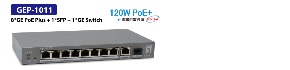 8*GE PoE Plus + 1*SFP + 1*GE Switch – GEP-1011